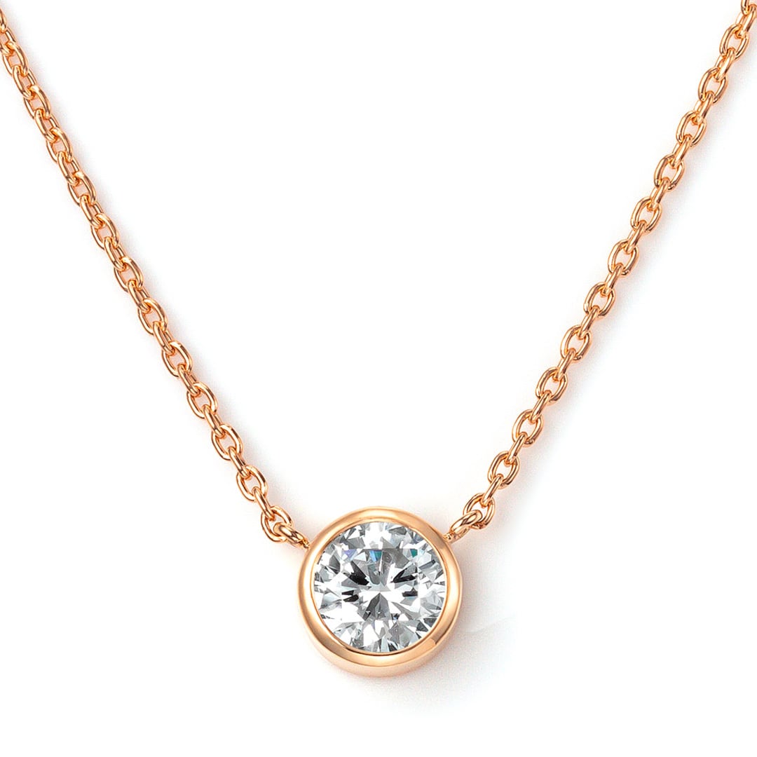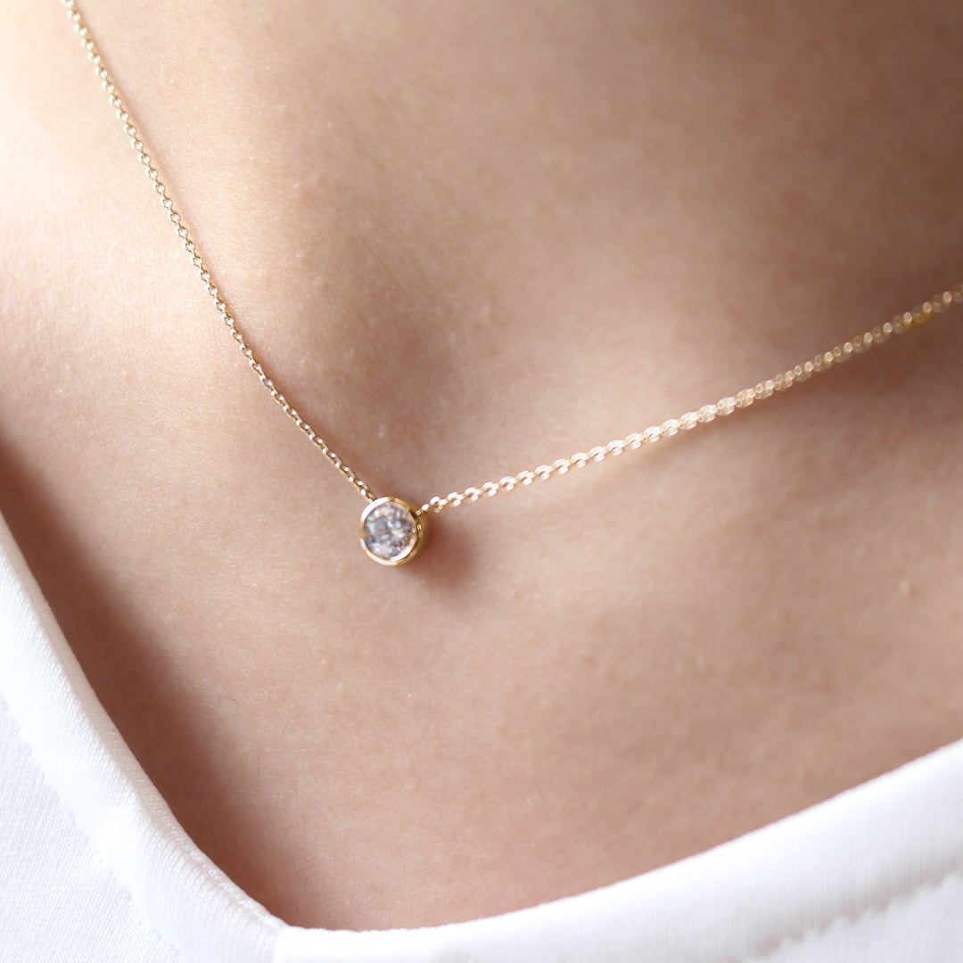 ベゼルセッティングは実際より大きく見えるのでお得感もあります。2個目のダイヤネックレスとしてもおすすめです。